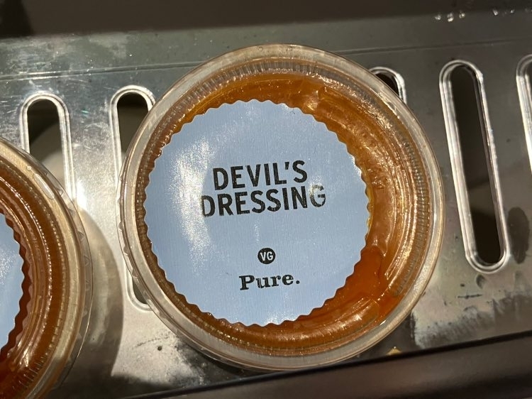 We met in a central London church which has great facilities, including a room with adjacent kitchen/dining area where we could make refreshments and have lunch. When I was decanting the contents of my shopping trolley into the fridge, I stumbled across not one but two pots of 'devil's dressing' which caused me, and everyone else much mirth.