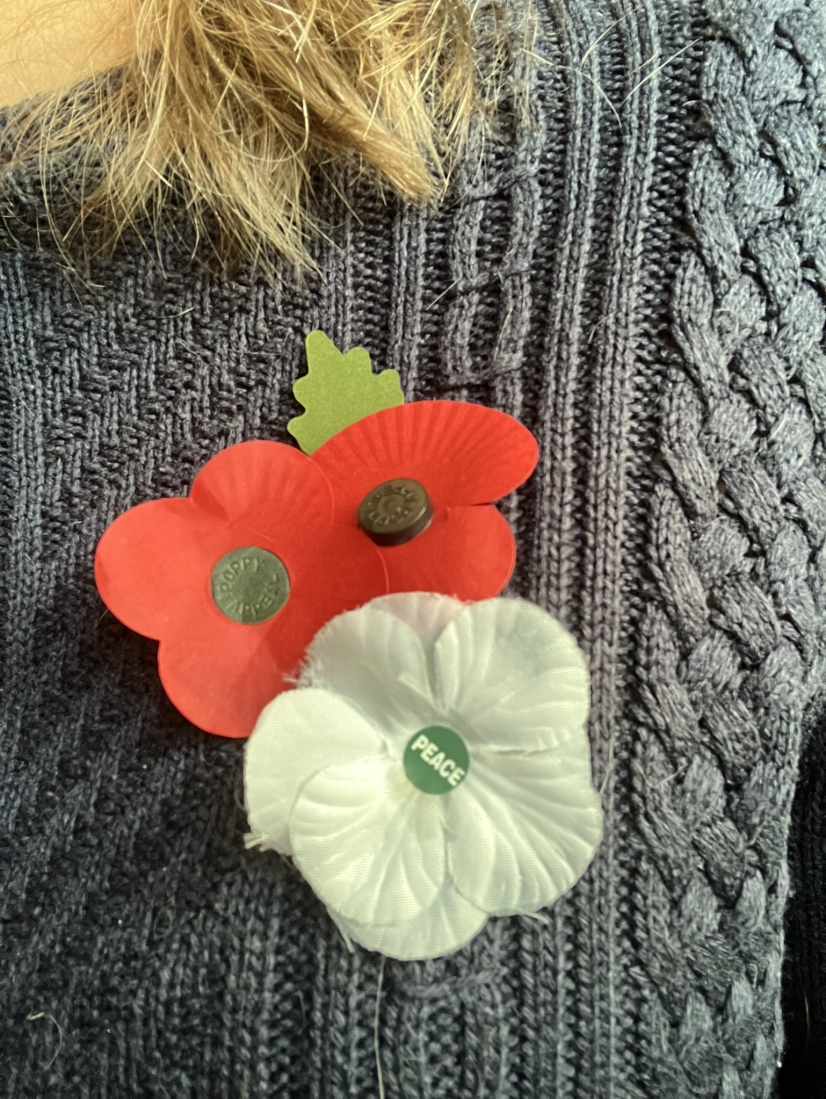 This year, my 'Poppy Scotland' poppy came from Edinburgh, my 'RBL' poppy from Crewe railway station (where they seemed to have uncovered a stash of poppies with plastic stems), the 'Peace Pledge Union' is an old one, stored away each year.
