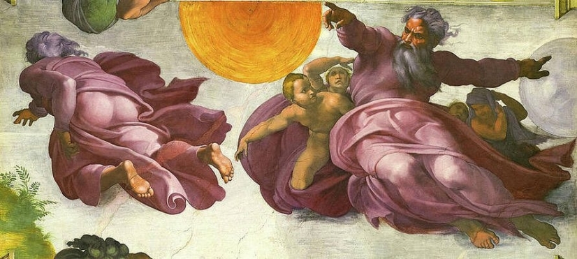 My Advent book suggested that I look at the image of God creating the sun and moon from the Sistine chapel… I have to confess I was distracted from the reflection question by the fact that on the left of the picture is a God who is mooning… a bare bahookie, a God whose backside is literally glimpsed…