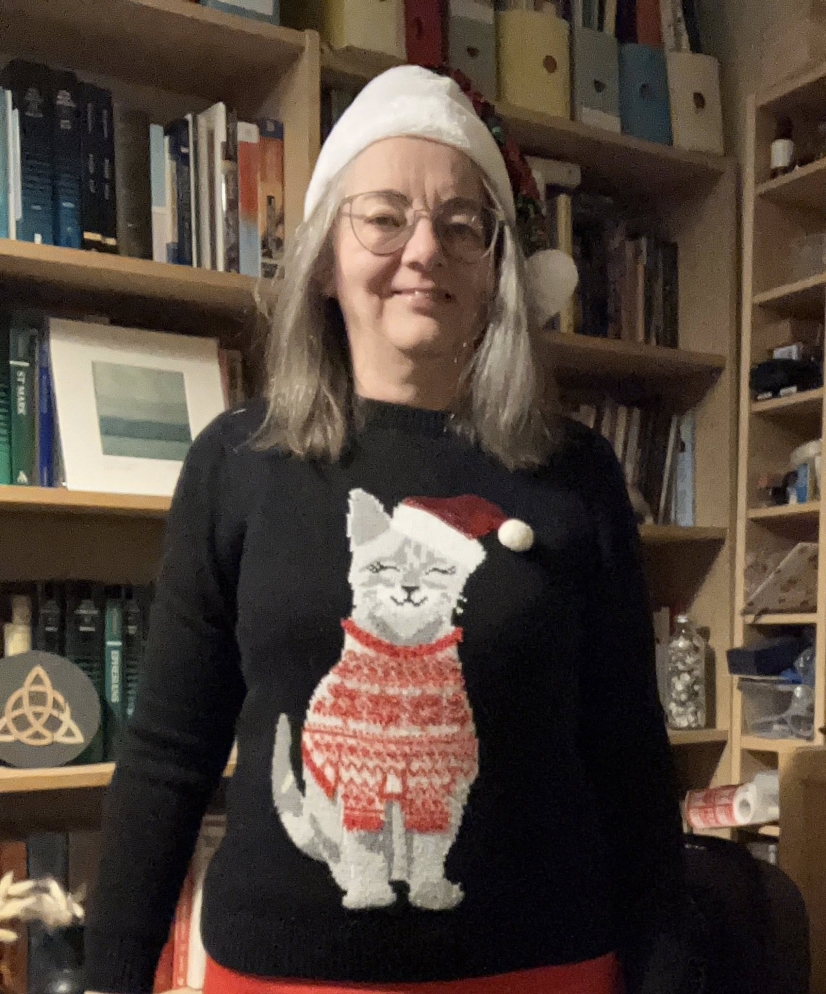 So, since, if you have an owl, you also need a pussy cat (if no beautiful pea-green boat) it's the Sophie jumper this morning. Over the coming days, look out for Sasha, Rudolph and others from my cheesy collection of jumpers!!