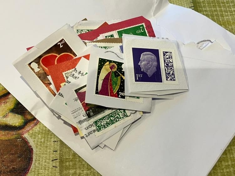 This morning I am enjoying the scent of furniture polish (unscented but you know what I mean), snipping around stamps ready to pop them in to the Leprosy Mission collection box at church, and then settling down to do some more of the Christmas jigsaw.