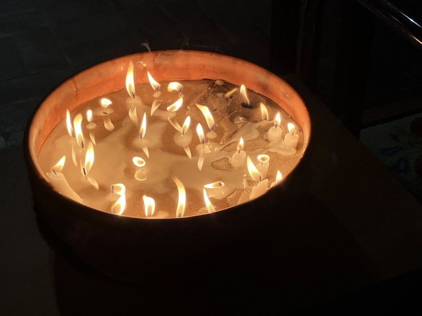 Yesterday afternoon, a very dark, dreich one at that, around fifty of us gathered for a Taize style service for the Week of Prayer for Christian Unity. It was lovely... gentle, low lighting, harmonies and cantor for the chants, and the opportunity to light candles as a symbol of unity. By the time the service ended, and I was able to snatch a photo, the candles had almost burned down, a flaming mass of candle wax that could equally have symbolised Pentecost. It was a lovely occasion, and really did offer light in the darkness.