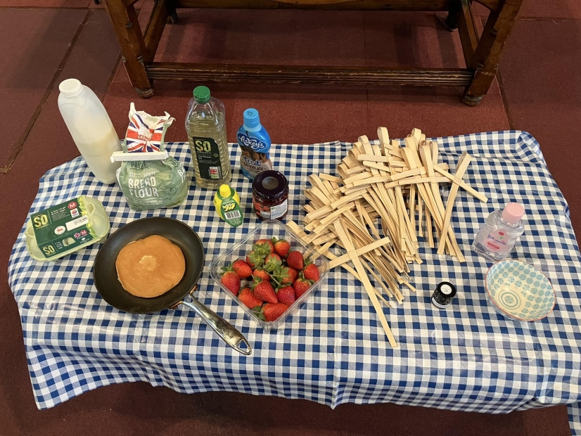 We talked about Shrove Tuesday, and about pancakes, then shared some made by that nice Mr Morrison and warmed in the church microwave (thank you J).